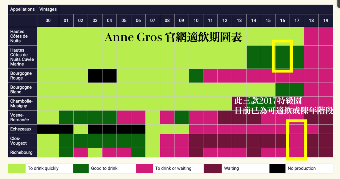 勃根地中被酒迷公認的三位傑出女性釀酒師中,其中 Anne Gros 與 Leroy 和 Domaine Leflaive 的 Claude 齊名,可以說是勃根地聲望最高的女釀酒師之一。知名美國酒評家 Jancis Robinson 讚譽道:Anne Gros 絕對是勃根地最受尊敬的釀酒師之一!