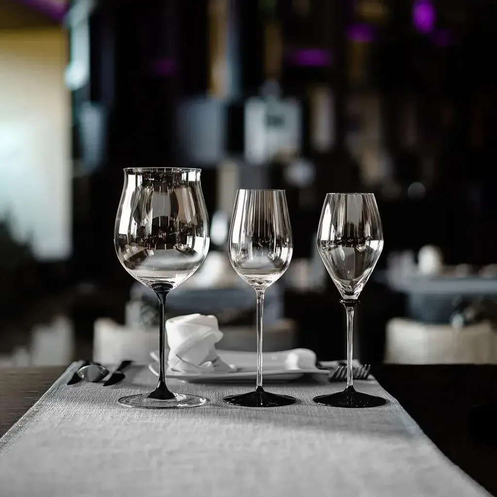 SOMMELIERS BLACK TIE 於 2008 年推出 ,主要為慶祝 RIEDEL 於全球第一個推出的SOMMELIERS Burgundy Grand Cru 杯款上市 50 週年 。紅葡萄酒杯以高大的黑色杯梗為特色 ,白葡萄酒杯則以黑色底座為特色 ,設計俐落時尚 ,杯身比例優雅 。